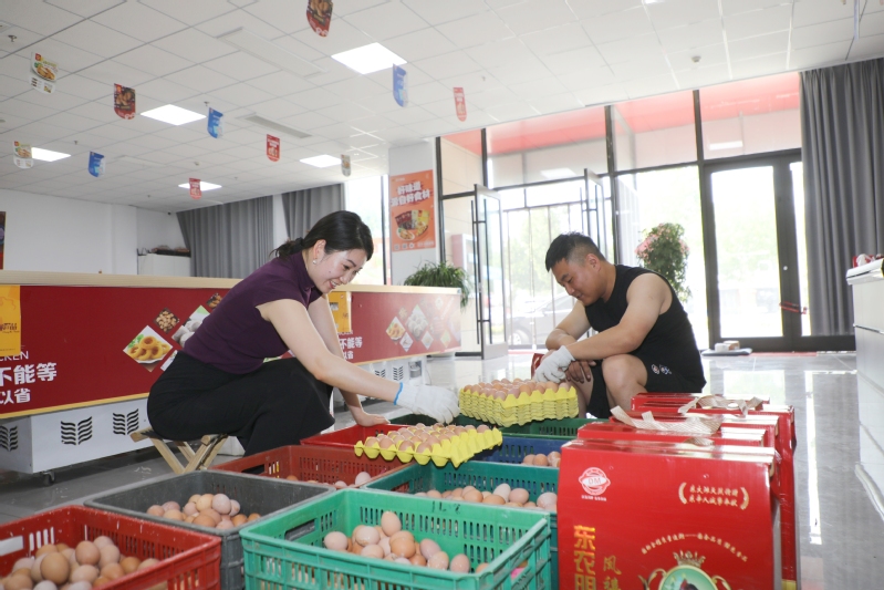 近日,东辛农场首批自营养殖的初生蛋一上线就备受追捧,线上预约通道开启仅2小时,330斤初生蛋就被抢订一空,上演了“秒抢”场面。图为工作人员正在分拣打包初生蛋。