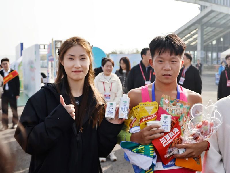 东米公司展销台前,众多产品集中亮相,虎皮凤爪、烤鸡翅根和盐焗鹌鹑蛋等开袋即食,以其高蛋白、口味佳的特点,备受参赛选手青睐。“这些产品都很适合健身人群,口感也很不错。”来自徐州的跑友李先生一边品尝,一边赞不绝口,并当场扫码关注了东米店铺。