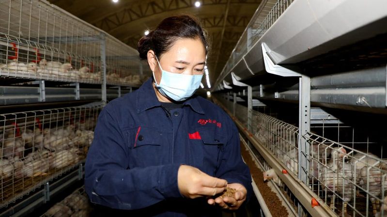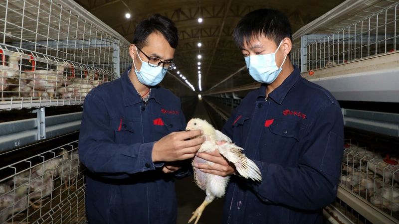 在东升鸡场智能化环控系统操控台前,工作人员正紧盯屏幕上的温度、湿度、通风频率等指标,迅速调整参数,将鸡舍环境精准控制在28℃、湿度55%的最佳区间。随后,他们步入舍内仔细查看鸡群采食情况,检查肉鸡粪便状态,不时记录肉鸡的生长数据。“当前正是肉鸡育肥关键期,我们实行24小时轮班制,每两小时巡查一次,确保及时发现并处理异常情况。”鸡场场长李东辉介绍,目前场内存栏的90万羽肉鸡长势良好,料肉比稳定在优质水平。