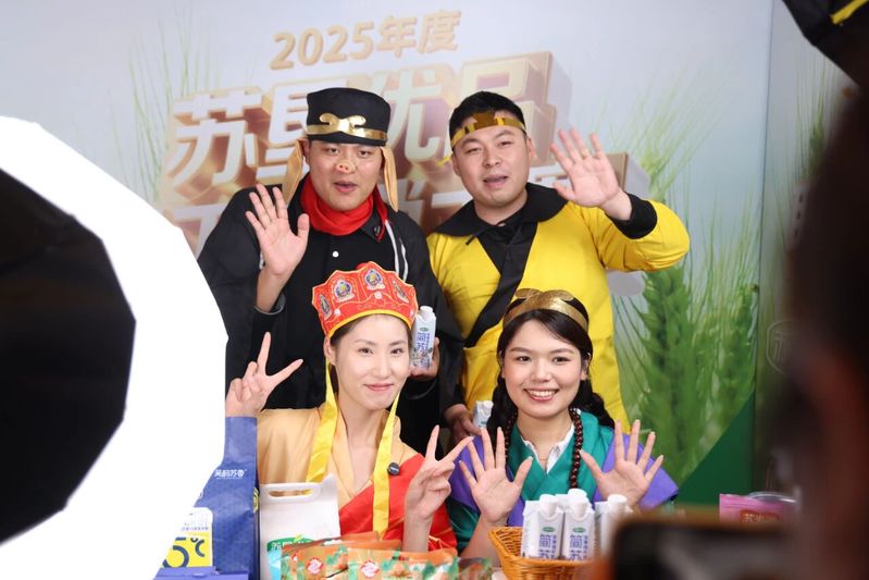 赛前,团队精心准备,反复调试灯光、设备和网络信号,并多次试播,逐帧优化镜头角度与画面效果。内容策划上,团队紧扣“苏垦优品”核心特点,精心打磨解说词,清晰传递产品优势。此外,团队创新打造“西游师徒带货”主题,将经典IP与产品推广深度融合,提前设计互动环节,为直播积攒高人气。