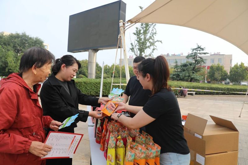 与此同时,广场上的东米公司新品展位前人头攒动,多款休闲食品有序陈列,工作人员耐心介绍新上市的卤味鸡爪、翅根等产品,并热情邀请职工居民试吃品尝,吸引众多消费者驻足。