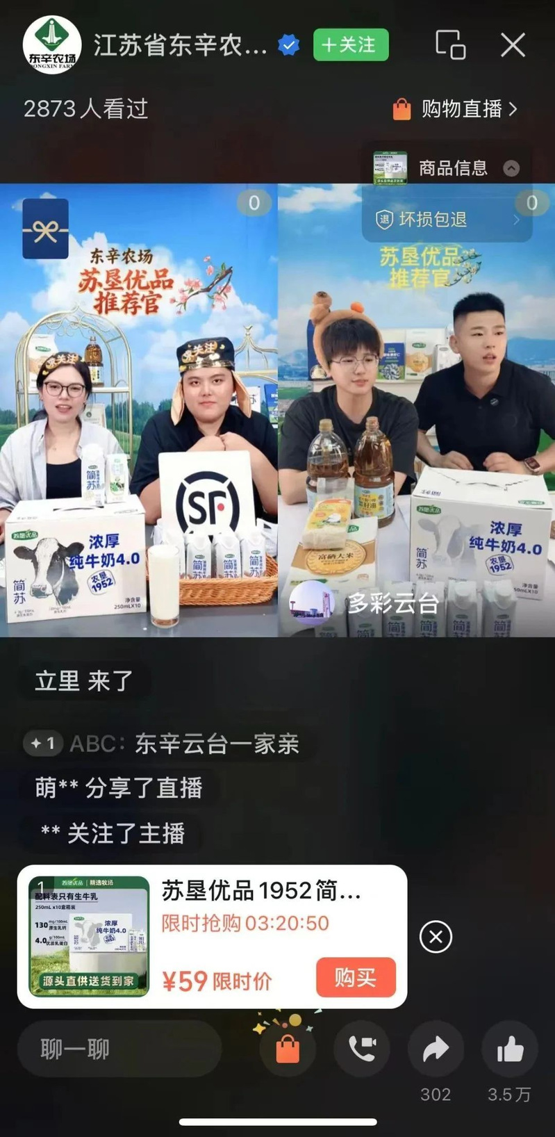 面对订单激增,冷链物流公司提前部署,通过“预打包”机制优化分拣流程,实现与顺丰的高效对接。目前,“简苏”牛奶订单均能做到每日下午5点准时发出,江浙沪地区最快次日达,部分周边城市甚至可实现当日送达。公司负责人陈涛表示:“我们从分拣、包装到装车全程跟踪,各环节严格计时、高效协同,让消费者体验到真正的‘东辛速度’。”
