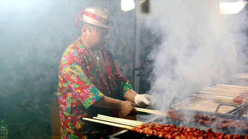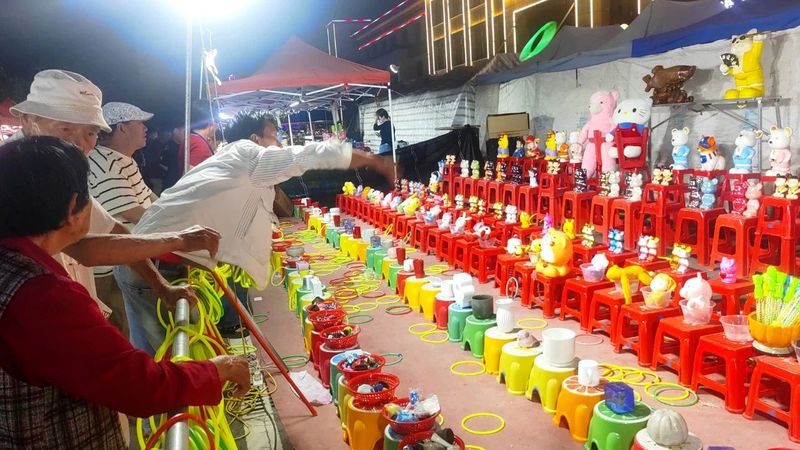走进灯火通明的夜市,蒙古烤肉滋滋作响,冰激凌摊位前挤满了孩童,铁板鱿鱼的焦香令人垂涎欲滴。玩具枪射击摊位前,人们屏息瞄准气球,“啪啪”声与欢呼声此起彼伏。套圈场地围满了人群,居民张大爷刚刚套中一个装着兔子的笼子,孙子拿着兔笼兴奋地跳起来:“中了!爷爷真厉害!”一旁的海盗船高高荡起,引得孩子们阵阵尖叫。旋转木马在彩色灯光的映照下,为家长和孩子脸上投下幸福的光斑。烟火气与居民幸福感在这里完美交融。