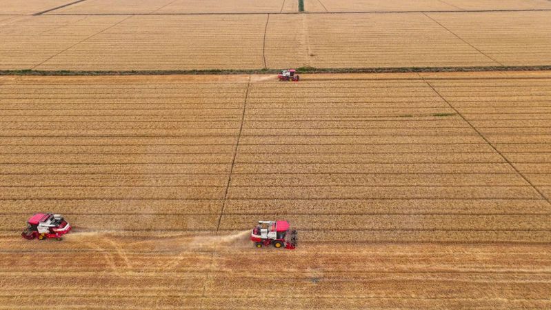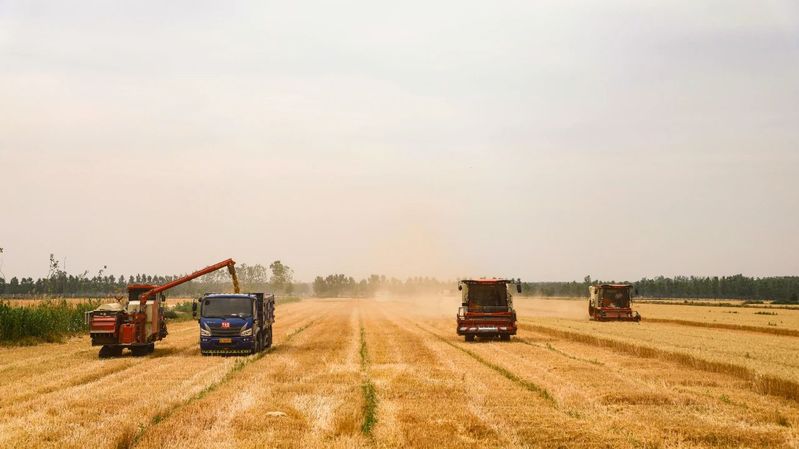 今年连续高温天气与降雨导致的小麦早熟,基地管理办公室迅速研判,将不利因素转化为抢收先机。基地管理办公室负责人庞国飞表示:“我们临时增加收割车辆,全力加快收割进度,确保小麦能够在最佳时机颗粒归仓。”