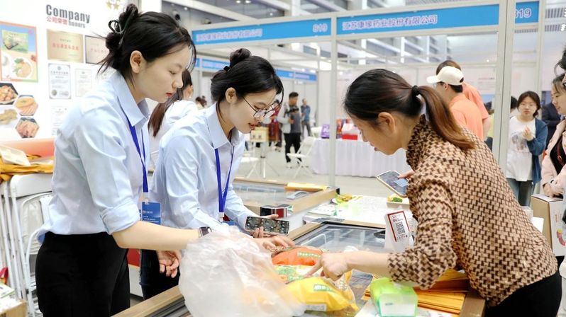 上午9点开馆后,东辛展区迅速成为3号馆的“流量担当”。“东米”鸡产品展位前顾客络绎不绝,新鲜出炉的鸡产品搭配健康蔬菜,令人食欲大增,鸡排、鸡块、鸡米花等产品更是备受青睐。连续品尝三块鸡排的张先生竖起大拇指:“肉质特别棒,口感也够正!”他当场下单了两袋家庭装。工作人员还现场演示各式烹饪方法,吸引众多顾客围观,百余份产品仅2小时就销售一空,不到正午便进入“补货”状态。
