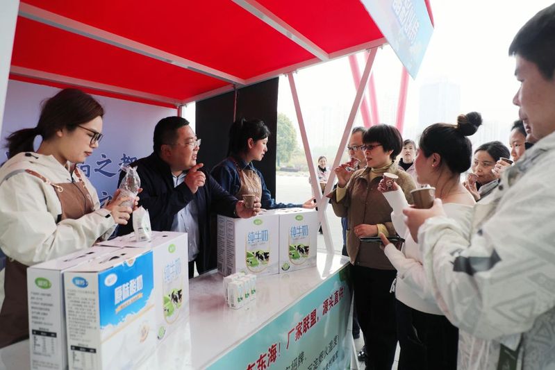 近日,在东海水晶大集上,东辛冷链物流公司工作人员热情地向深圳组团游客介绍“简苏”产品:“我们‘简苏’牛奶奶源来自东辛农场国有生态牧场,生鲜乳各项检测指标高于欧盟标准,每100ml蛋白质含量高达3.8g,秒杀市面上同价位产品……”