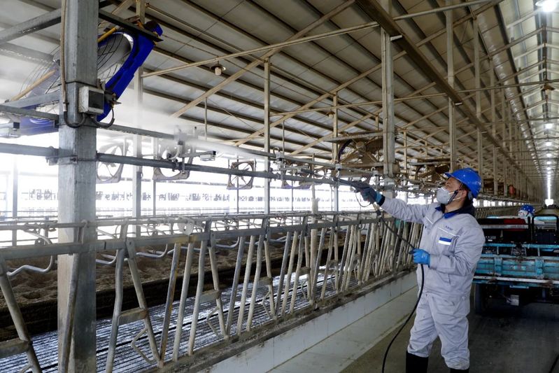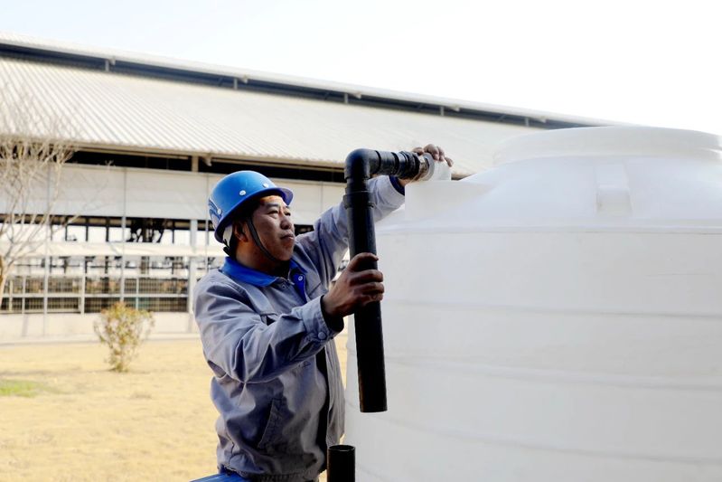 “热应激不仅会导致奶牛采食量下降、产奶量降低,还可能引发一系列健康问题。做好热应激预防工作至关重要。”苏垦优然牧业公司董事长、总经理孙红军介绍。走进牛舍,一片忙碌景象映入眼帘:技术人员穿梭在牛舍的各个角落,对风扇、喷淋头等防暑降温设施进行地毯式检查,并用高压水枪清除设备上的灰尘、污垢。“奶牛养殖最适宜的温度在4-16℃之间,预计4月中旬牛舍内温度就会攀升至16℃以上,防暑降温工作迫在眉睫。”饲养车间主任韩文康说道。为了赶在高温到来前落实好各项措施,大家加班加点推进降温设备清洗维护工作。同时,技术人员对设备的电路系统、管道系统进行全面检修,及时更换老旧损坏零部件,有效降低设备运行风险。此外,还对饲料配方进行优化,有效提升牛只免疫能力。