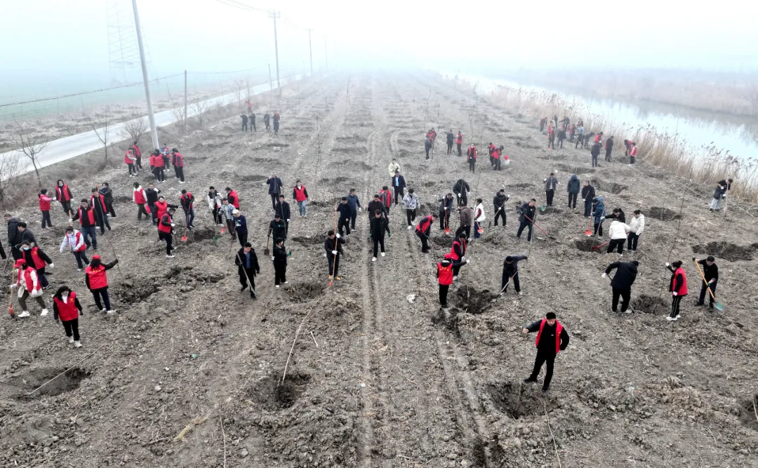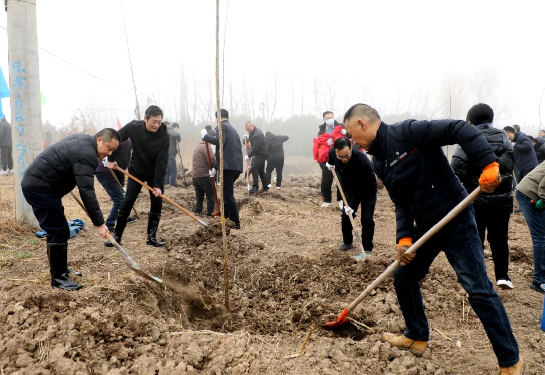 挥锹铲土、扶苗填坑、浇水灌溉……在林业公司技术人员的指导下,大家干劲十足、热情高涨,或三人一组,或四五人合作,有序投入到火热的植树劳动中。活动现场,领导干部发挥带头作用,冲锋在前,职工群众默契配合,紧跟其后,尽管薄雾弥漫,大家却热情不减,现场呈现一派团结协作、热火朝天的劳动景象。“看着一株株新栽下的苗木迎风而立,生机勃勃,真让人高兴。希望通过这样的义务植树活动,多为家乡绿色发展贡献力量。”