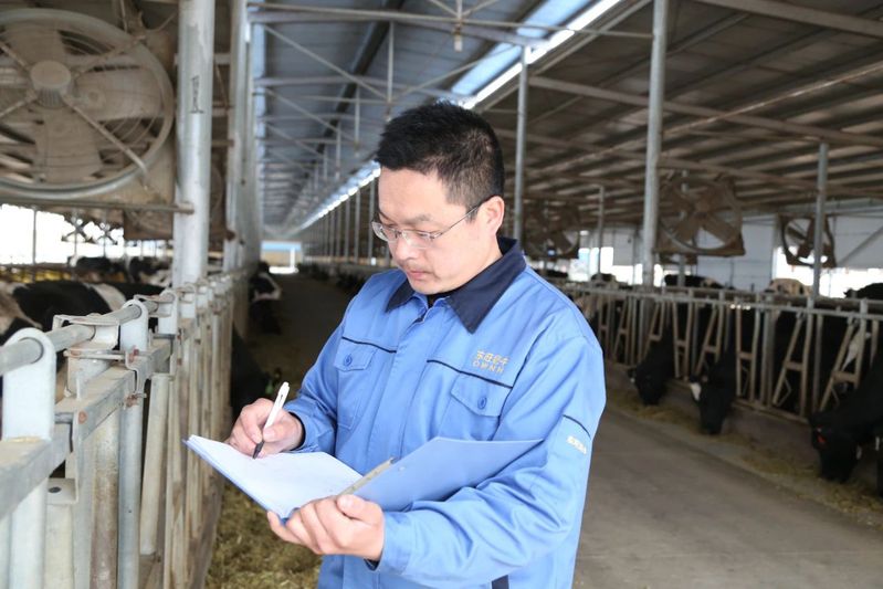 败与尝试后,终于研发出了由豆粕、青贮、苜蓿等组成的自配料配方。这种“量身定制”的饲料不仅降低了饲料成本,还显著提高了奶牛的采食量与产奶量,生鲜乳的脂肪含量提升了0.2个百分点。他常常蹲在牛槽边观察奶牛进食,眼神中充满了炽热与期待,他深知,每一次的咀嚼都是对配方的最好验证,新配方诞生当年即为牧场节约了50万元。