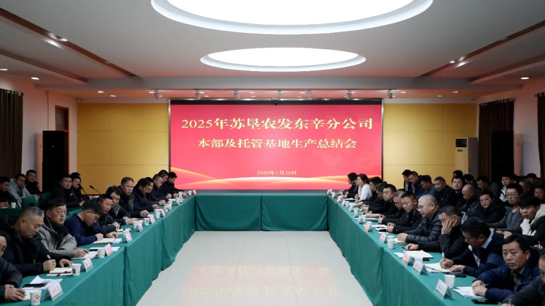 为系统总结2025年农业生产工作经验成效,深入剖析当前生产短板与问题症结,明确2026年重点工作方向,持续推动农业生产提质增效,1月30日,苏垦农发东辛分公司在招待所南会议室召开2025年本部及托管基地生产总结会。东辛党委书记、董事长、苏垦农发东辛分公司总经理赵志,党委委员、苏垦农发东辛分公司常务副总经理陈跃武,党委委员、苏垦农发东辛分公司副总经理武心波出席会议。